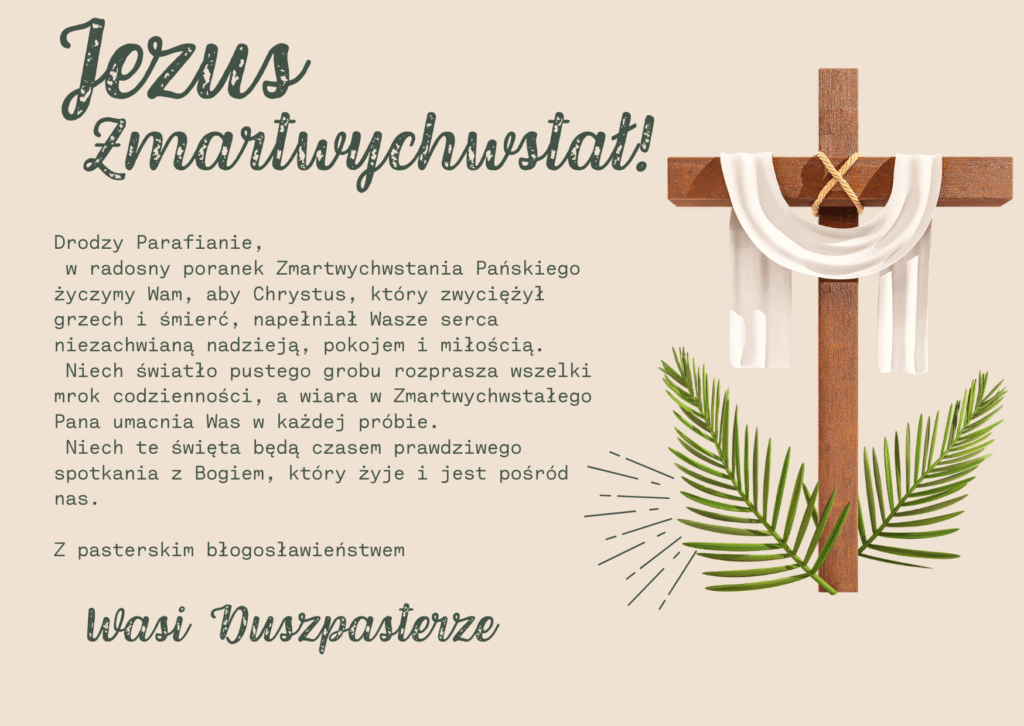 - Dzisiaj przeżywamy Niedzielę Męki Pańskiej. Błogosławieństwo Palm po każdej Mszy Świętej. Procesja z palmami na Mszy o 11.30 i 13.00.