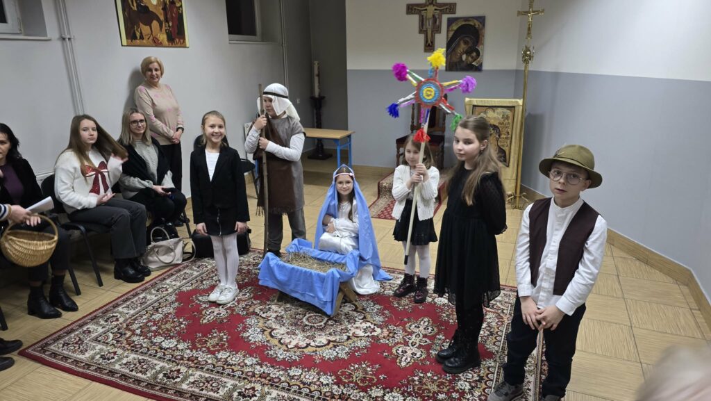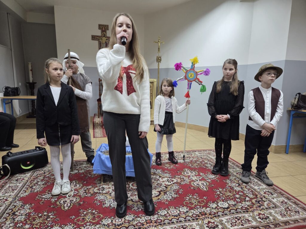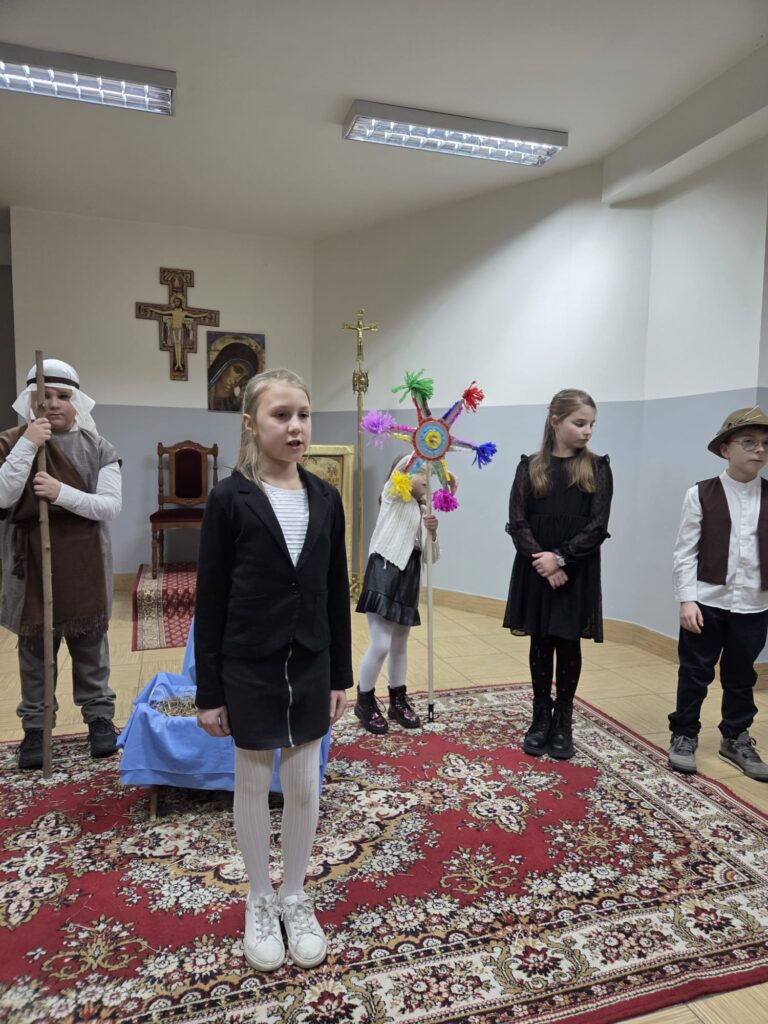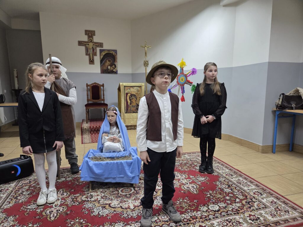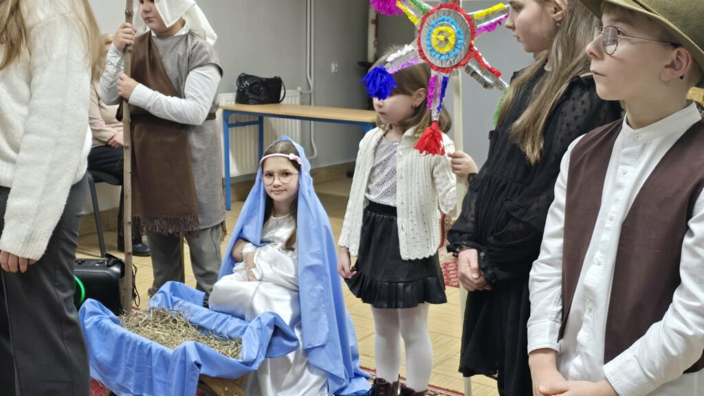 Inscenizacje przygotowały panie katechetki Agnieszka i Renata. Następnie pani Mirosława Bury zaprosiła wszystkich do stołu wigilijnego.