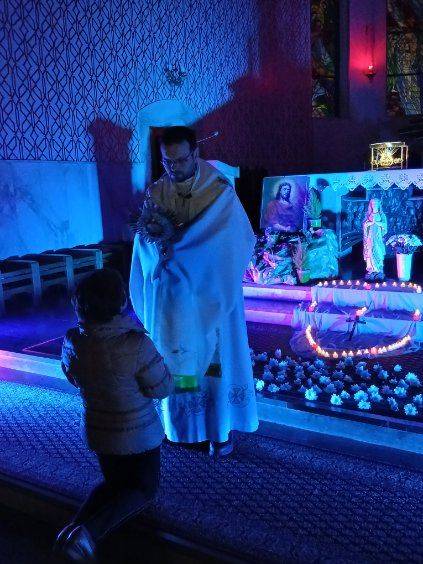 Podczas modlitwy wielu parafian skorzystało z możliwości indywidualnego błogosławieństwa, prosząc o umocnienie, pokój serca oraz opiekę Maryi w codziennych sprawach.